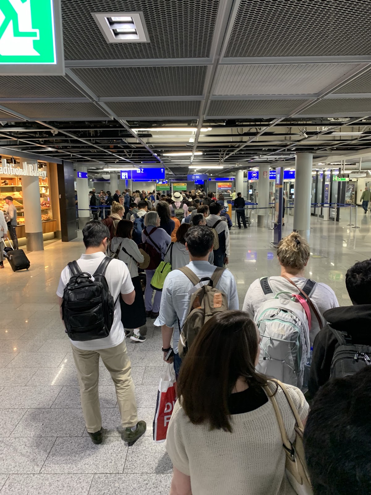 長蛇の列を乗り越えて、全員飛行機に搭乗しました。