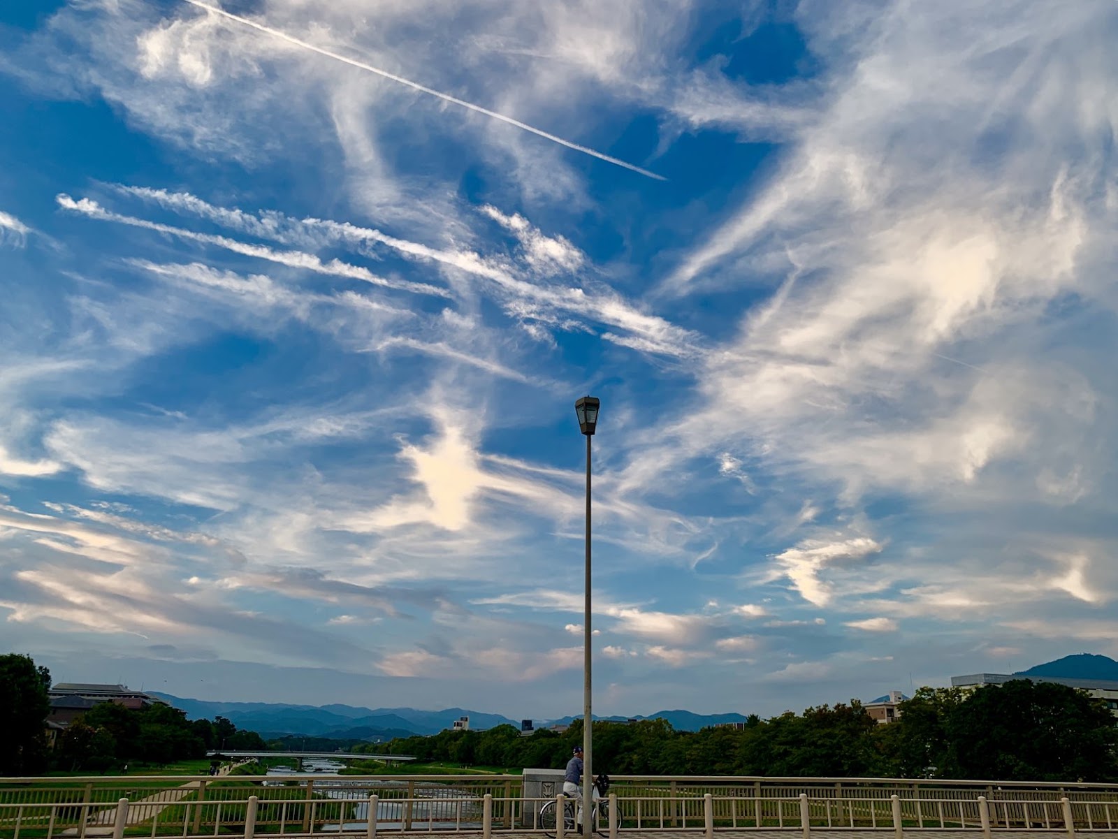 空に走る雲の軌跡。昨日も一生に一回の空でした。