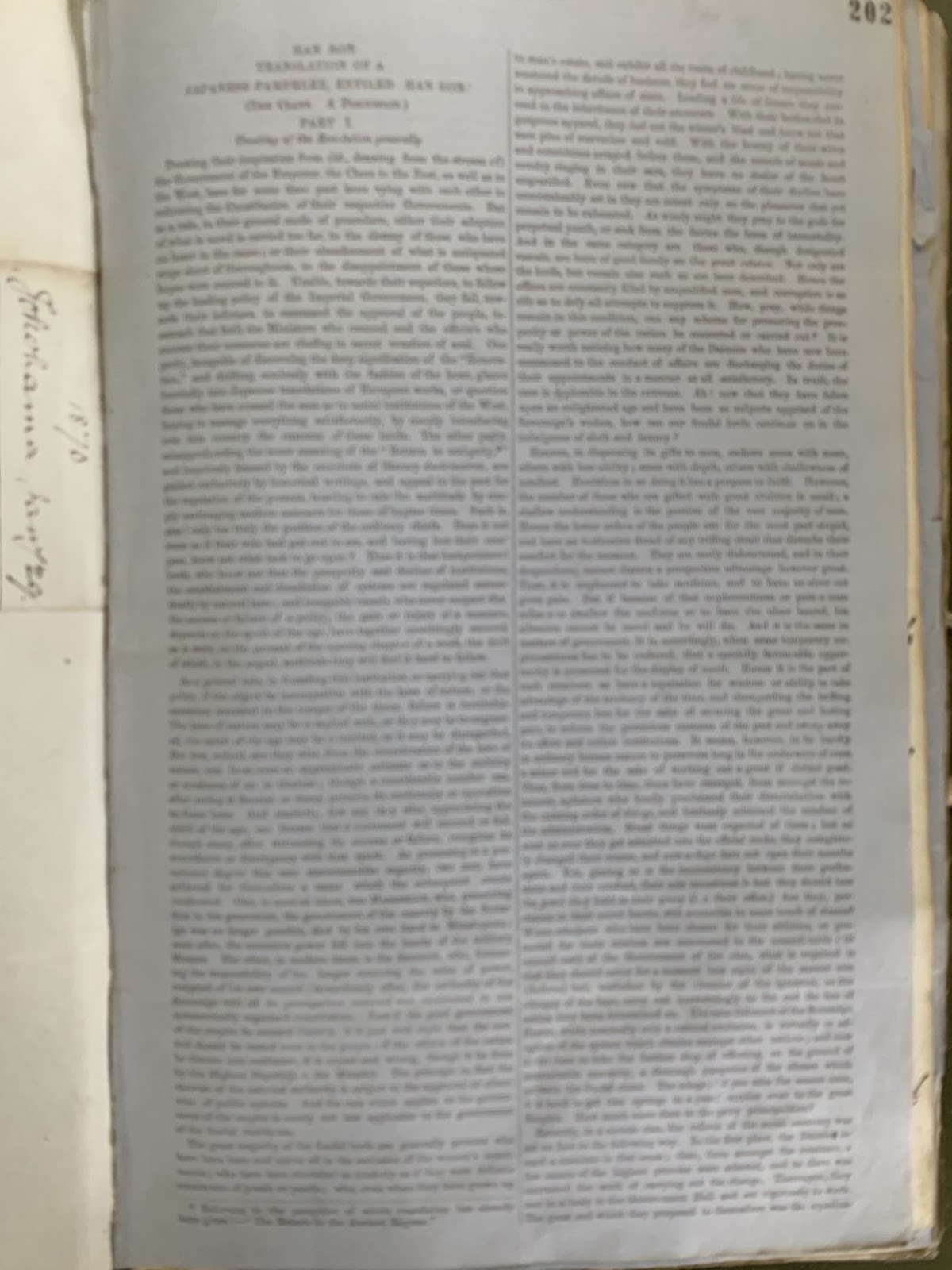 幕末史の研究家でも、パークスの書簡の実物なんて、なかなか手に出来ません。しかも、歴史の闇に葬られていた『藩論』を絶賛した部分なのです。