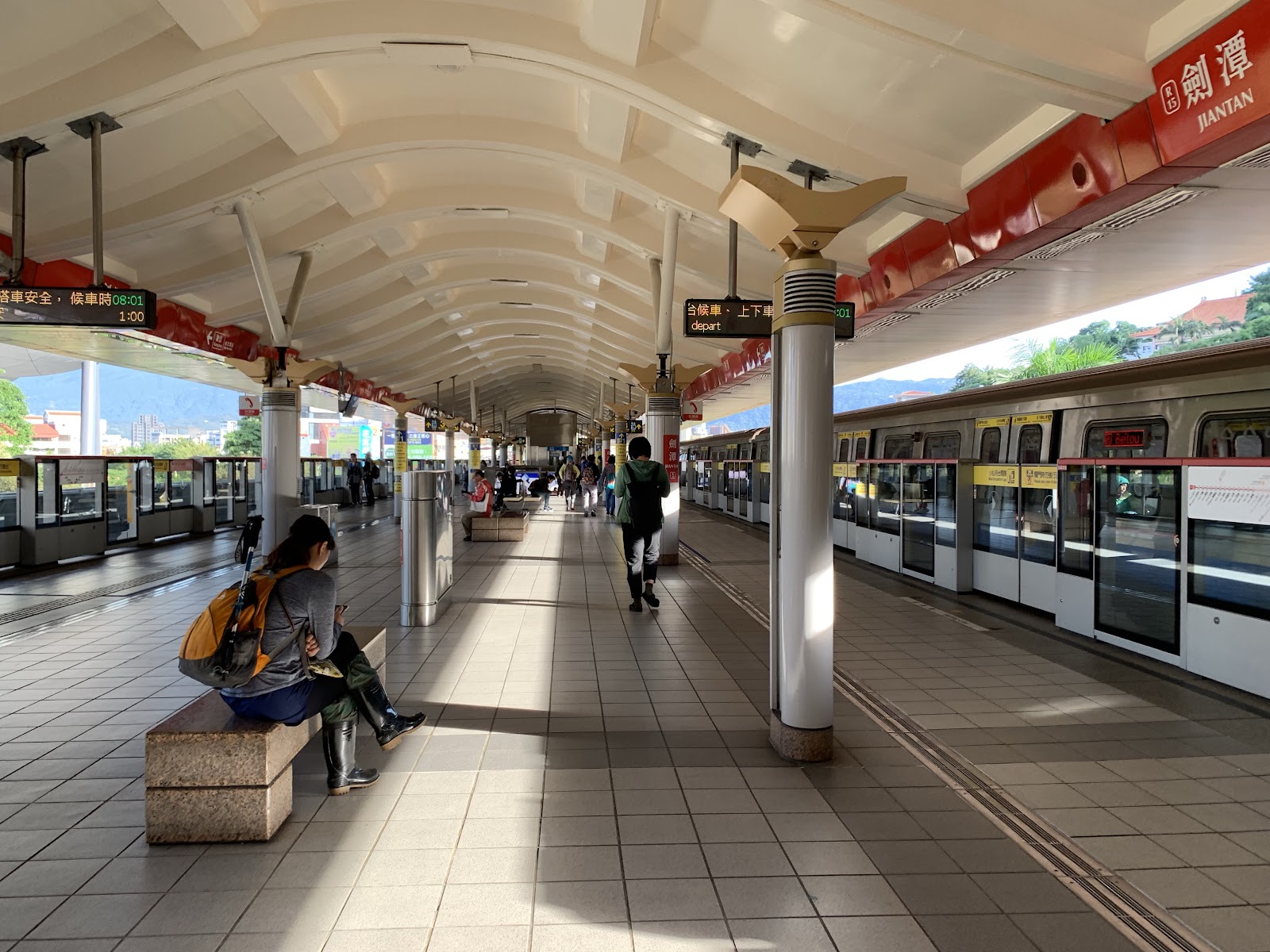 美しい晴天となりました。電車で佛立寺に近いJiantan駅まで。朝の台北の雰囲気。台湾らしい綺麗な街路樹。