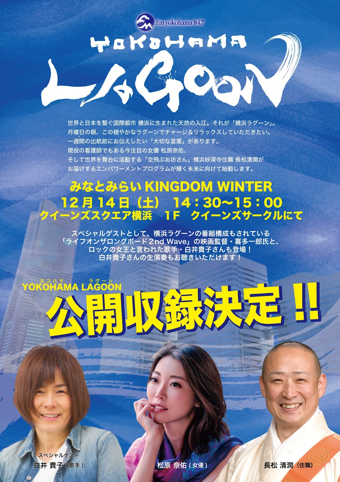 12月14日は横浜の中心、みなとみらいを舞台に公開収録があります‼️