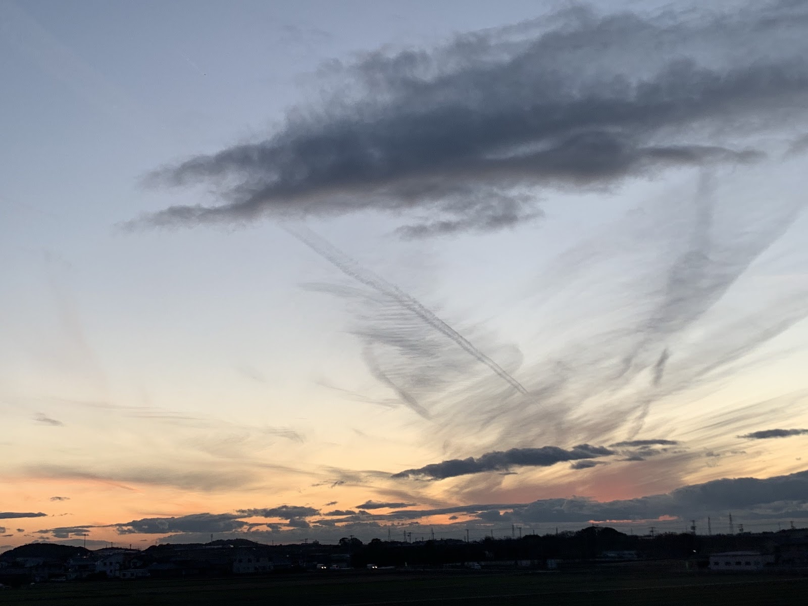 昨日の夕方、新幹線から見た「モーニング・グローリー」のようなロール状の雲の帯。