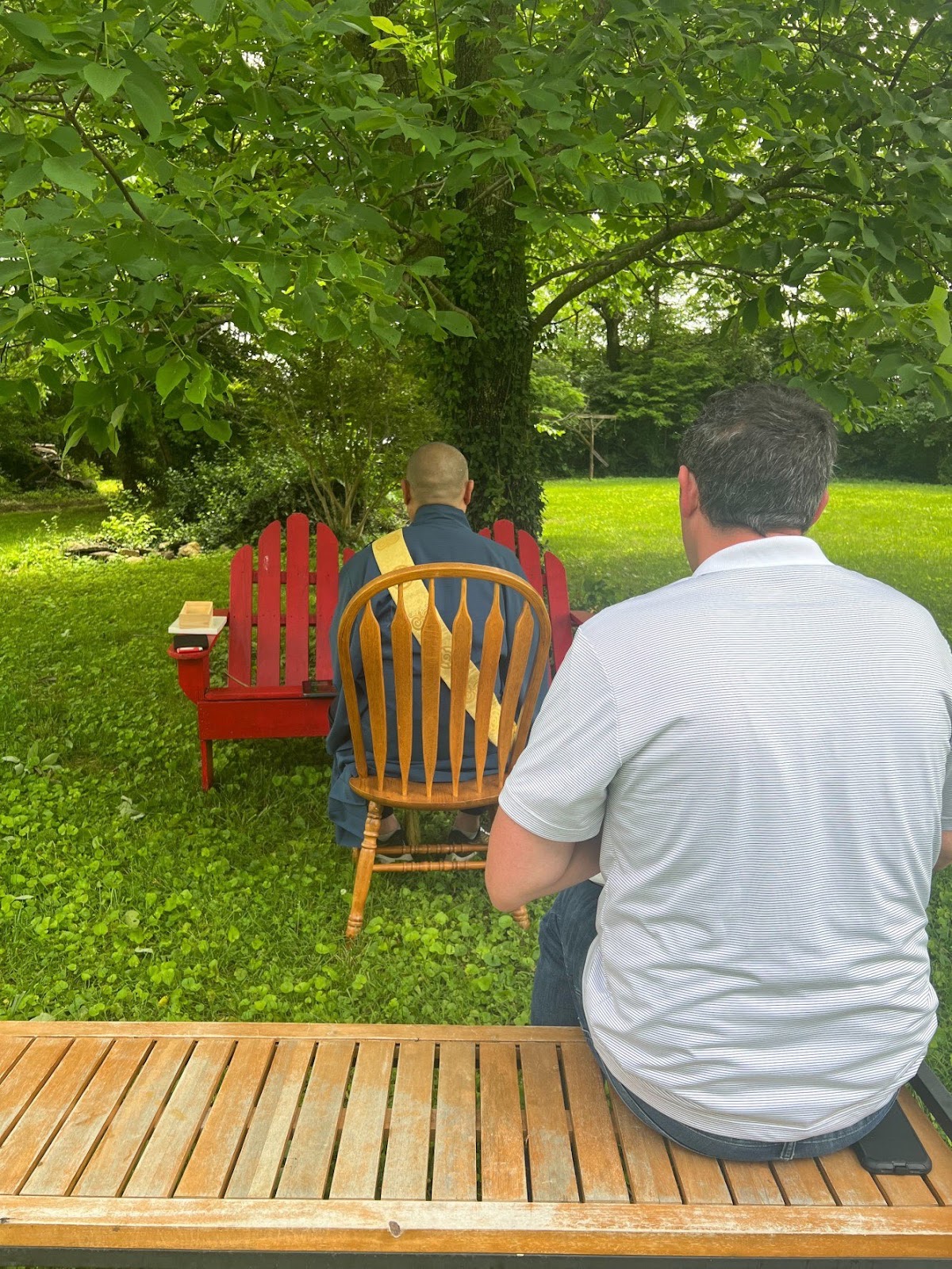 彼の家は、ダンビルの街で大変由緒ある農家で、素敵なお宅でした。家に到着し、まずは彼の半生をゆっくりお聞きしました。そして様々な宗教に関する疑問や意見もお聞きしました。