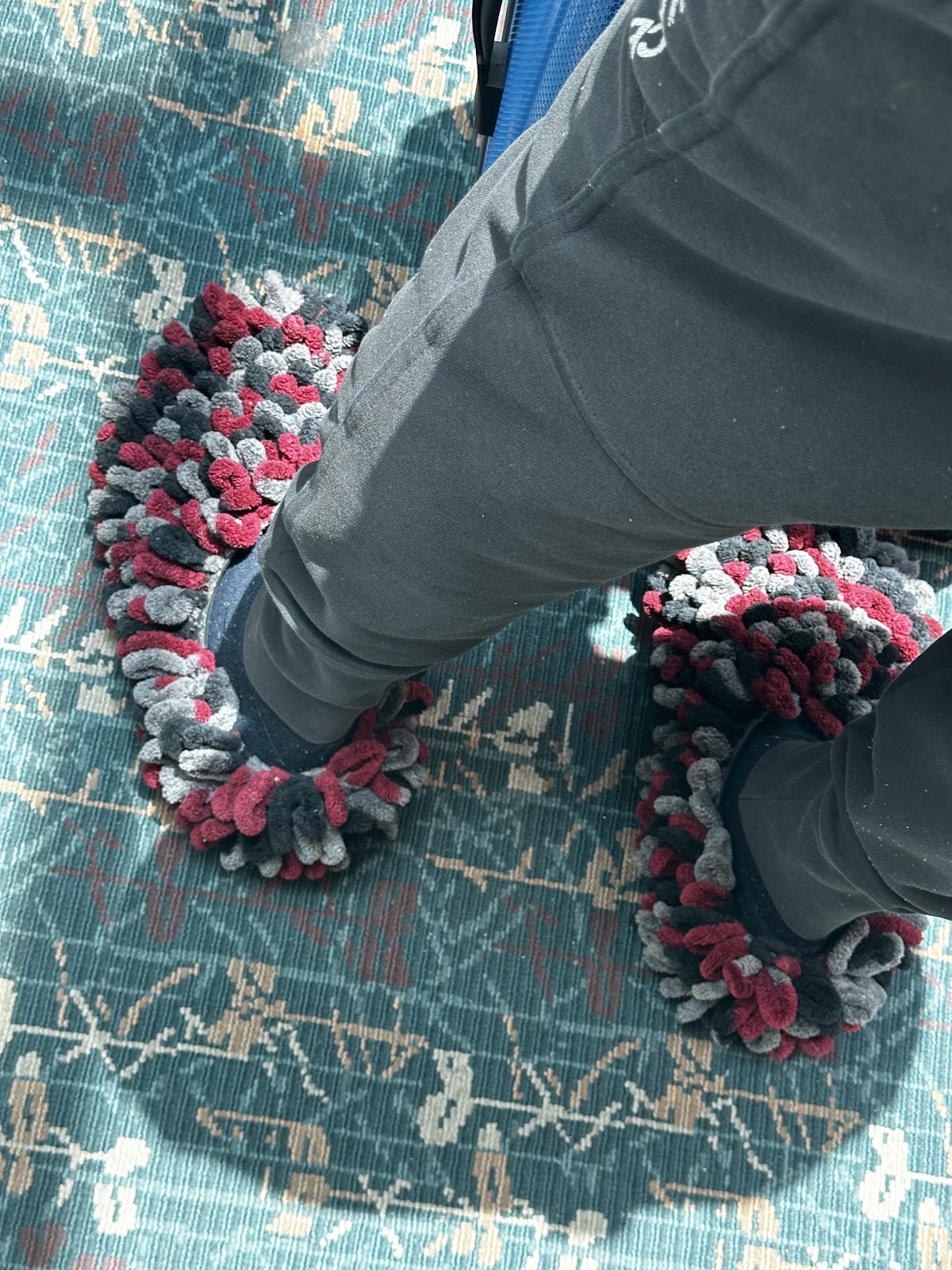 面白いシューズを見ました。モップのよう。まるで歩きながら道を磨いてくれてるみたい。接近してじっくり拝見しました。うーむ、つくづく、いろんな人がいるなぁ。