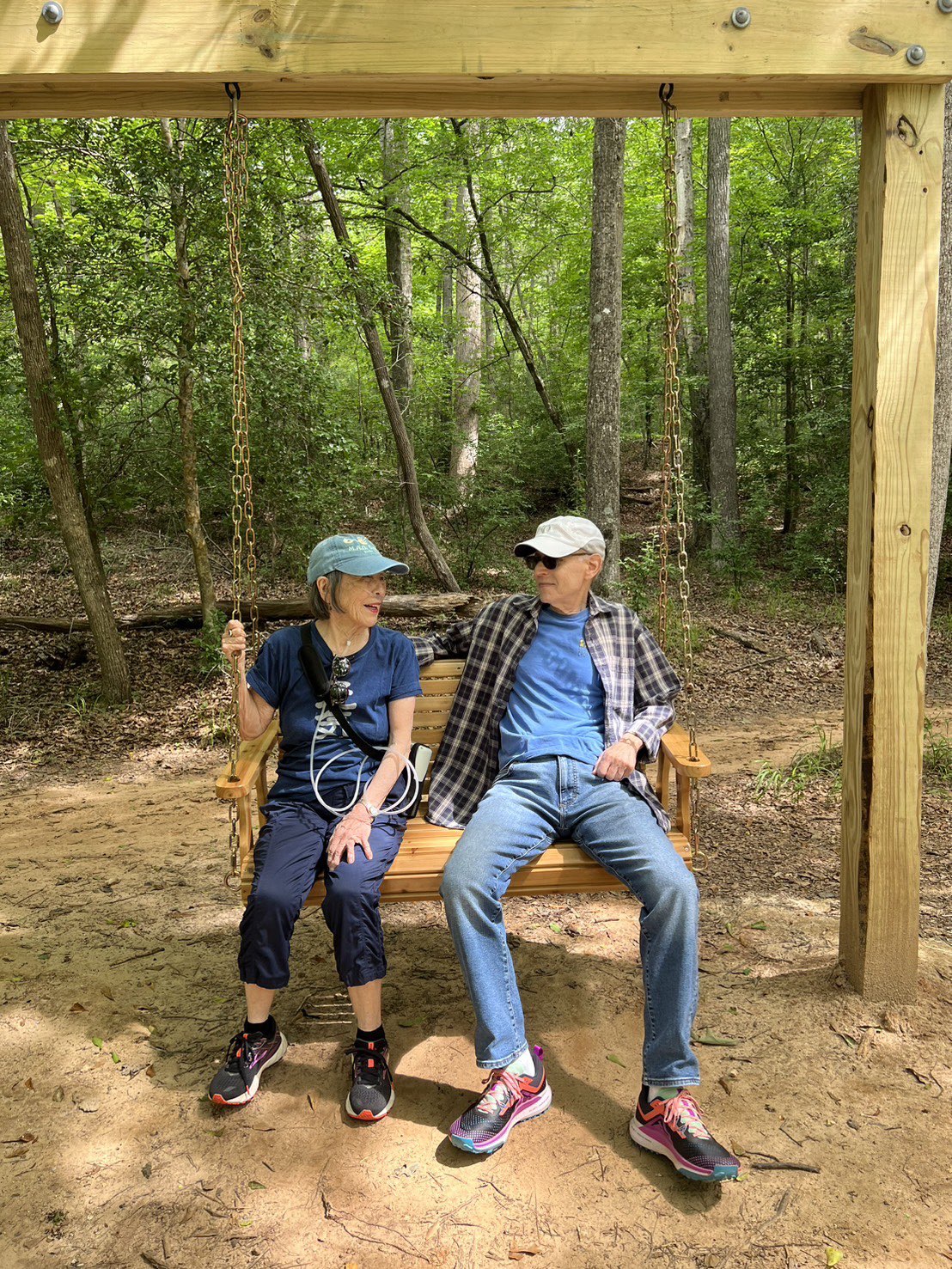 散策中、お二人の仲睦まじい姿を拝見できて、僕たちまで幸せになりました。ブランコに座っているお二人を立耕師が撮影してくれました。素敵な写真です。