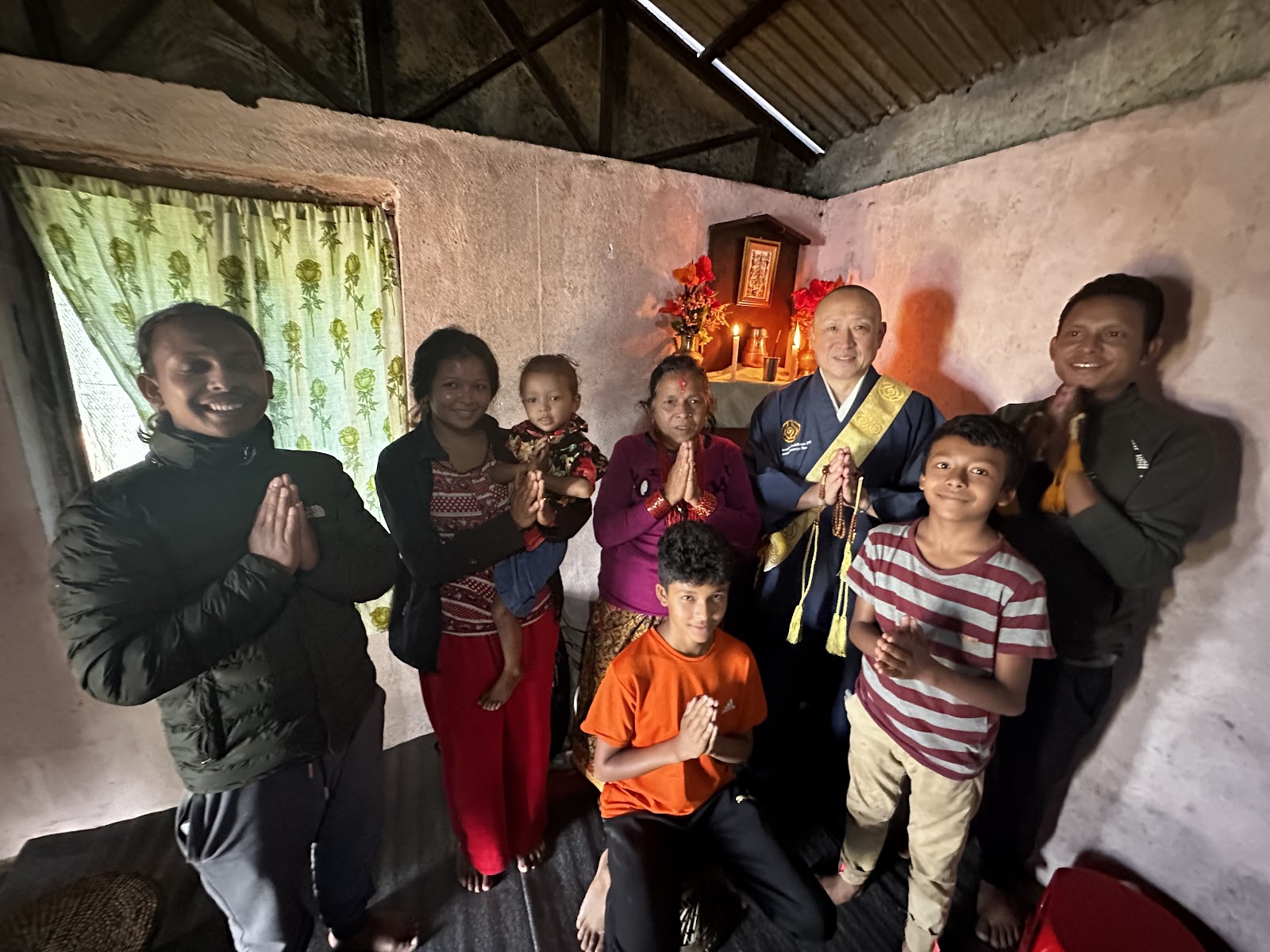 サムンドゥラデヴィの学校へ行く前、ラジャン・シュナルさんの家でお助行させていただきました。彼は本当に素直な素晴らしい男性信徒です。
