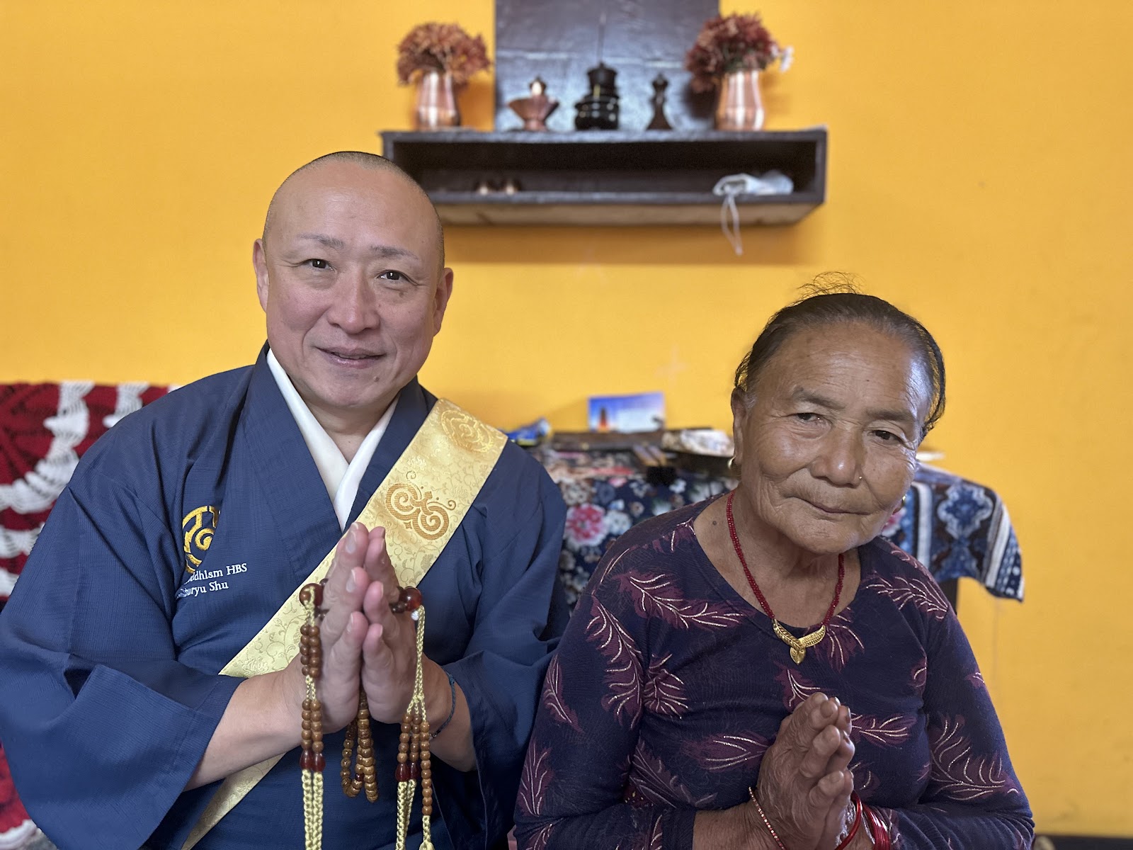 最後のお助行先はHBSネパールの局長・ナランのお席、参詣者が30名を超えて大変な盛り上がりでした。奥さんのシュバラチミさん、通称クジュさんは婦人会長、清行師が風邪をひくとお粥を作ってお寺まで持ってきてくれるような女性で、ウィニーちゃんと親友になってくれています。ありがたいです。