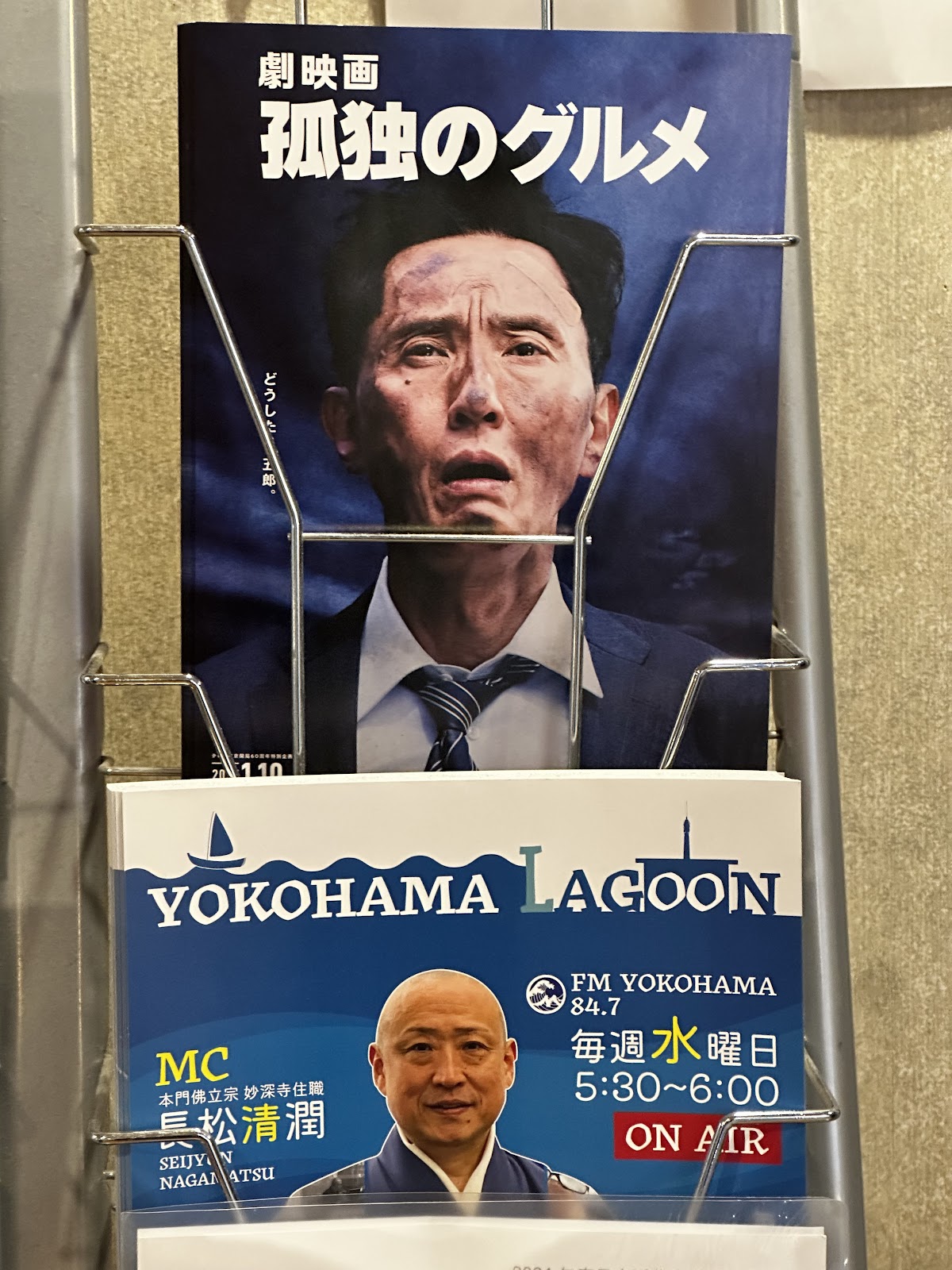 帰り際、ふと見たら、松重豊さんのお写真のすぐ下に「横浜ラグーン」のリーフレットを置いてくださっていて、とても恐縮しました。