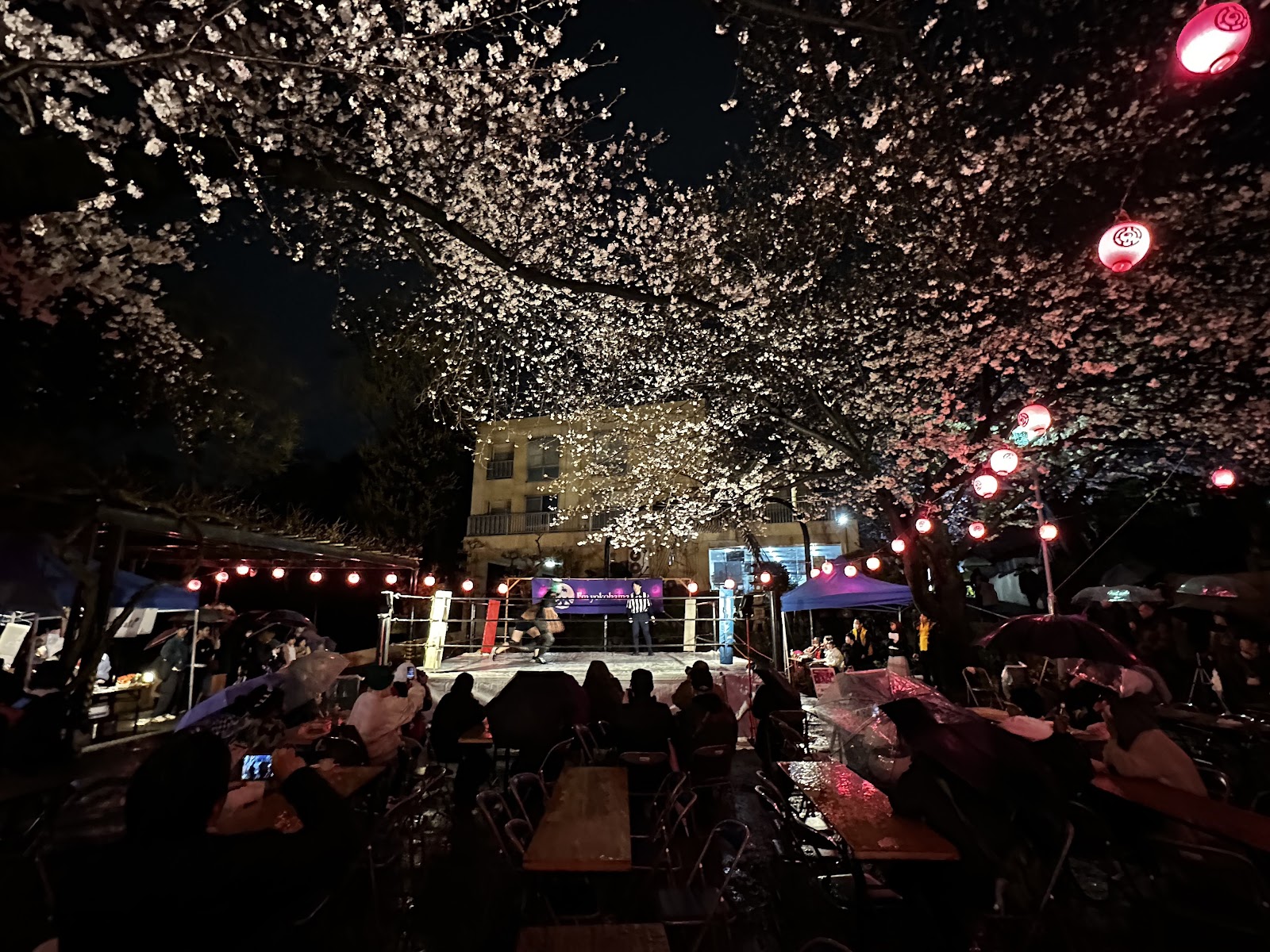 桜雨や花しぐれを「あいにく」と呼んではいけないようです。春雨は春に降る細い雨脚の雨。今年の開導さくらまつりは春雨の中の開催となりました。