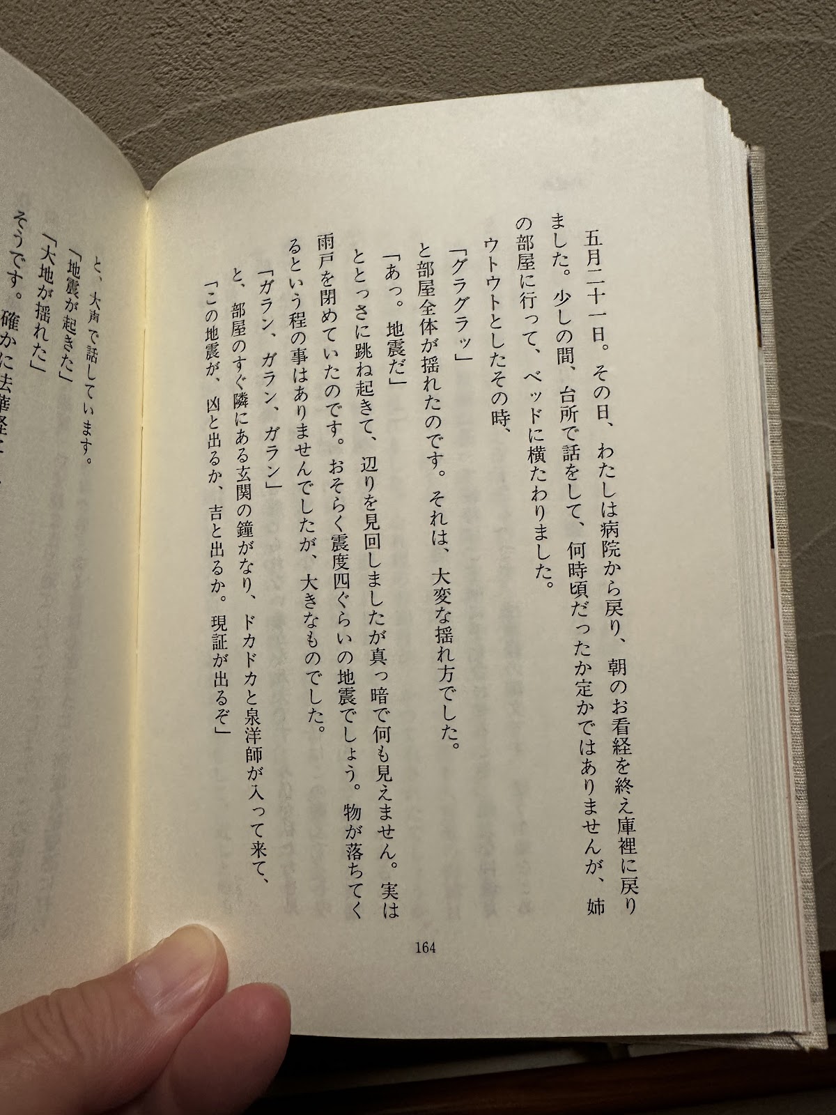 「あっ。地震だ」