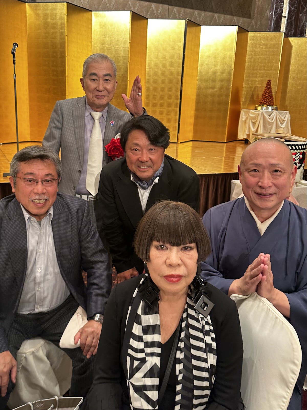 王鵬関の応援団、すごいです。久しぶりにジュンコ先生にご挨拶していたら文枝師匠と弘兼憲史先生も入ってくださいました。すごい一枚。